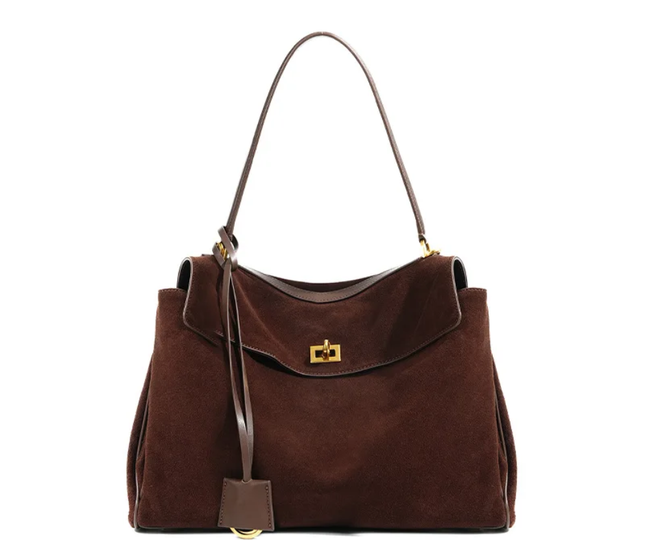 Mit den Maßen 23 cm x 11 cm x 35 cm bietet die Elegance Suede ausreichend Platz für all Ihre Essentials und ist der perfekte Begleiter für jeden Anlass. Für diejenigen, die eine klassische Ledervariante bevorzugen, bieten wir die Elegance Leather an. Diese Variante ist in stilvollem Schwarz erhältlich, wahlweise mit einer goldenen oder silbernen Schnalle. Beide Versionen der Elegance Handtasche sind ein Statement für zeitlose Eleganz und erstklassige Handwerkskunst.