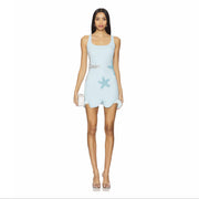 Dieses hellblaue Minikleid ist die perfekte Wahl für einen lässigen und dennoch stylischen Beach-Look. Das figurbetonte Design mit verspieltem Asymmetrischen Saum verleiht dem Kleid eine einzigartige Optik. Die glitzernden Seestern-Applikationen setzen maritime Akzente und machen es zum idealen Outfit für Strandtage, Sommerpartys oder einen tropischen Urlaub. Der leichte, atmungsaktive Stoff sorgt für ein angenehmes Tragegefühl, egal ob über dem Bikini oder als luftiges Sommerkleid.