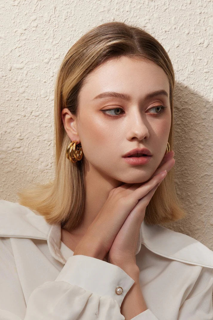 Diese stilvollen Ohrringe bestehen aus hochwertigem Edelstahl und sind mit einer 14-karätigen Vergoldung versehen, was ihnen einen luxuriösen Glanz verleiht....