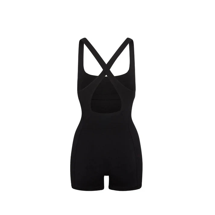 • Design: Rückendetail mit überkreuzten Trägern, das einen stilvollen Cutout-Effekt erzeugt. Figurbetonter Schnitt für eine elegante Silhouette