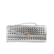 Diese Clutch mit geflochtener Optik ist das perfekte Accessoire für elegante Anlässe. Ihre Oberfläche verleiht ihr einen edlen Look, während das gepolsterte, geflochtene Design für eine exklusive Note sorgt. Der feine Kordelverschluss mit goldenen Details setzt einen stilvollen Akzent und macht die Tasche zu einem echten Hingucker.